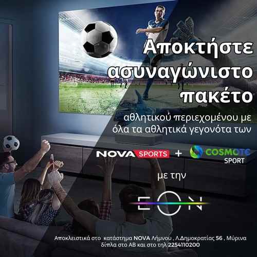Αποκτήστε ασυναγώνιστο πακέτο αθλητικού περιεχομένου με όλα τα αθλητικά γεγονότα των Novasports και Cosmote Sports με την ΕΟΝ+ και φυσικά από το κατάστημα NOVA Λήμνου , Λ.Δημοκρατίας 56 , Μύρινα , δίπλα στο ΑΒ και στο τηλ 2254110200