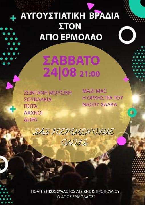 Σήμερα: Αυγουστιάτικη Βραδιά με Παράδοση και Κέφι στον Άγιο Ερμόλαο!