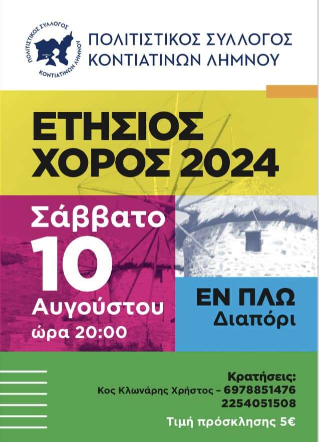 Ο λόγος για τον Σύλλογος Κοντιατινών Λημνου που ετοιμάζει μεγάλο γλέντι στο ΕΝ ΠΛΩ στο Διαπόρι