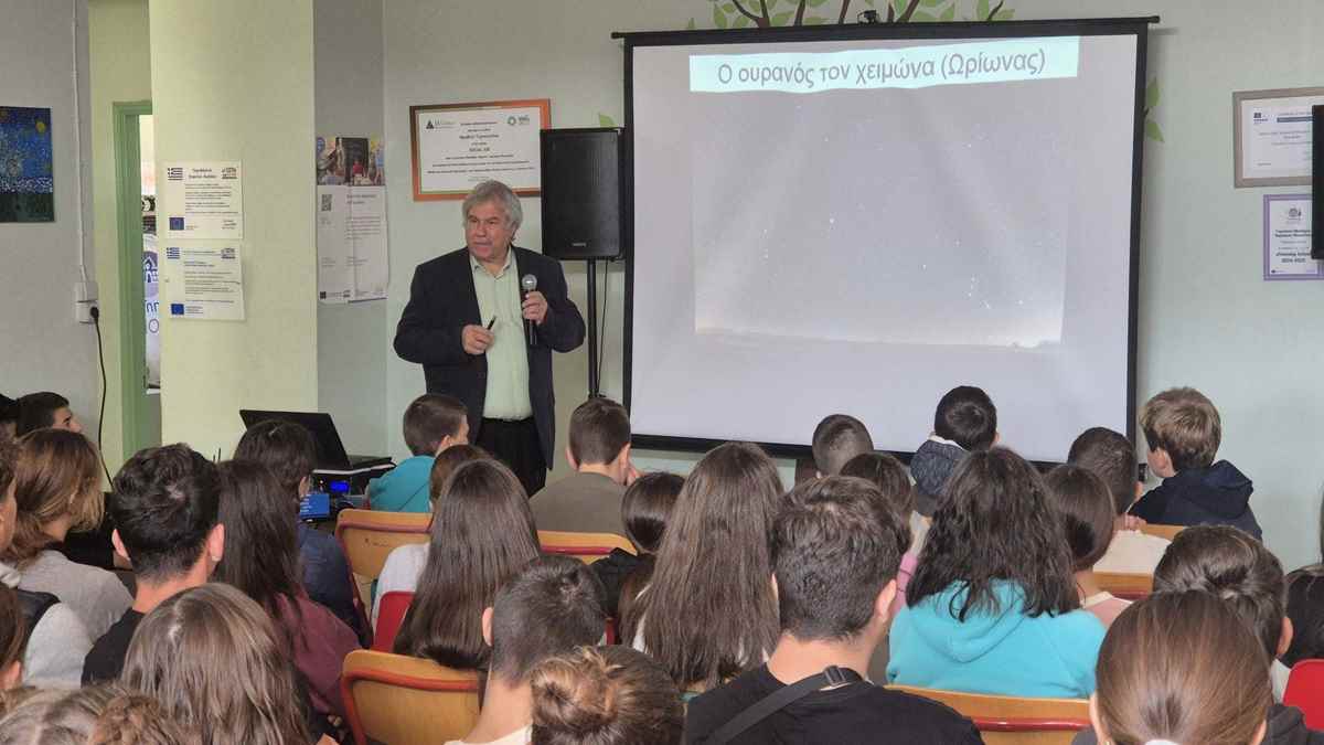 Εχθές Τετάρτη το Γυμνάσιο Μούδρου «Αργύριος Μοσχίδης» είχε την τιμή να υποδεχθεί τον ομότιμο καθηγητή Αστρονομίας του ΑΠΘ, κ. Σταύρο Αυγολούπη.