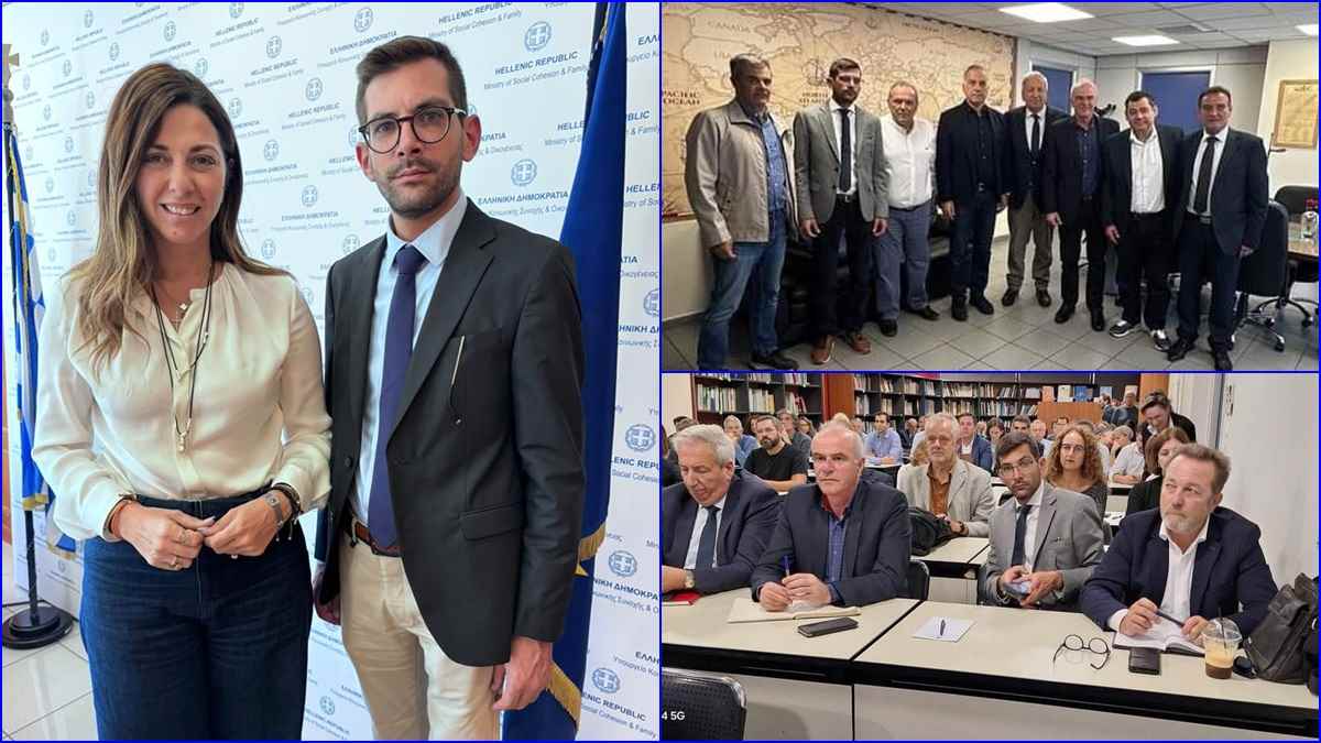 Τελευταία συνάντηση σε αυτό το ταξίδι ήταν εκείνη με την Υπουργό Κοινωνικής Συνοχής και Οικογένειας κα Ζαχαράκη στις 25/10 όπου συζητήθηκε το μεγάλο πρόβλημα του δημογραφικού που αντιμετωπίζουν τα μικρά νησιά. Η κα Υπουργός “ανέθεσε” στο Δήμαρχο την ευθύνη για την δημιουργία ομάδας εργασίας με σκοπό την εξεύρεση πρακτικών για την αντιμετώπιση του ζητήματος. Τέλος, συζήτησαν για το θέμα του παλαιού οικισμού όπου η κα Υπουργός υιοθέτησε την πρόταση του Δημάρχου για την άμεση επιστροφή της χρήσης της έκτασης στο Υ.Κοι.Σ.Ο. (ανάκληση του σχετικού ΦΕΚ) με σκοπό την συνέχιση της διαδικασίας της άρσης απαλλοτρίωσης από τους ενδιαφερόμενους, κάτι που προγραμματίζεται ακόμα και εντός του 2024.