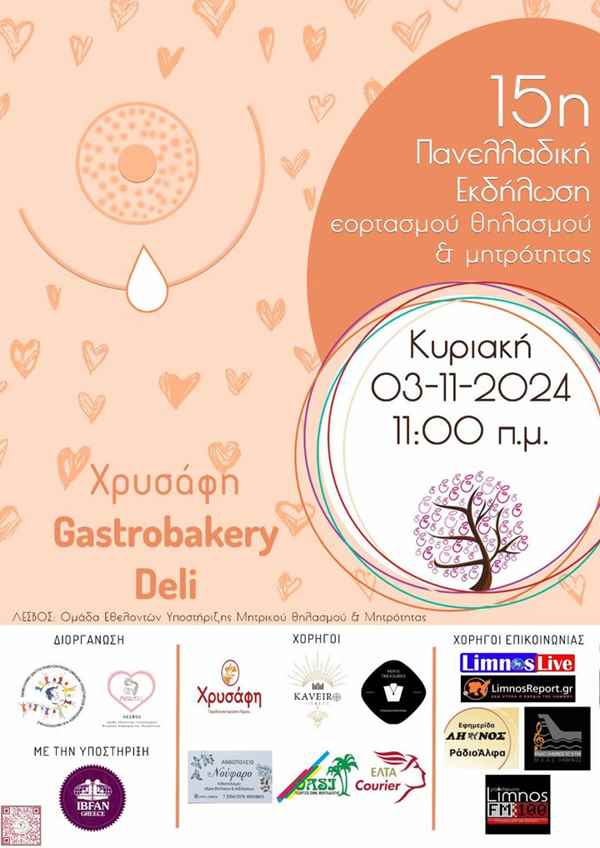 Την Κυριακή 3 Νοεμβρίου στις 11:00 το πρωί θα πραγματοποιηθεί η «15η Πανελλαδική Εκδήλωση Εορτασμού Θηλασμού & Μητρότητας Υποστήριξη και Ενθάρρυνση για Όλους!» στο κατάστημα Χρυσάφη gastrobakery – deli