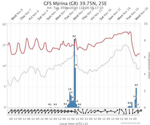Όπως σας είχα ενημερώσει πριν 6 μέρες περίπου (Δείτε ΕΔΩ) σε μία μακροπρόθεσμη εκτίμηση τάσης του καιρού για το όμορφο νησί της Λήμνου μέχρι τις 15/11/24 φαινόταν μία αλλαγή του καιρού γύρω στις 15/11/24 με αξιόλογες βροχοπτώσεις.