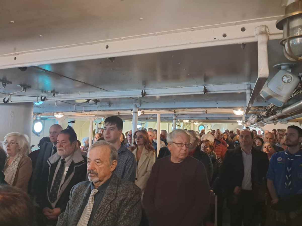 Μεγάλο ήταν και το ενδιαφέρον και η συμμετοχή των παρευρισκομένων στο τέλος της εκδήλωσης κατά την ξενάγηση του Θωρηκτού Αβέρωφ από το πλήρωμα του πλοίου.
