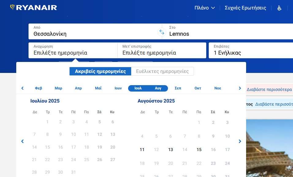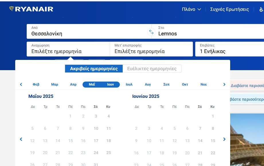 Μια επίσκεψη στην ιστοσελίδα της Ryanair επιβεβαιώνει τις αλλαγές. Όσοι επιθυμούν να κλείσουν εισιτήρια για το δρομολόγιο Θεσσαλονίκη – Λήμνος παρατηρούν ότι οι πτήσεις δεν είναι διαθέσιμες τον Μάιο, όπως είχε αρχικά ανακοινωθεί, αλλά μόνο από τον Αύγουστο έως και τον Οκτώβριο.