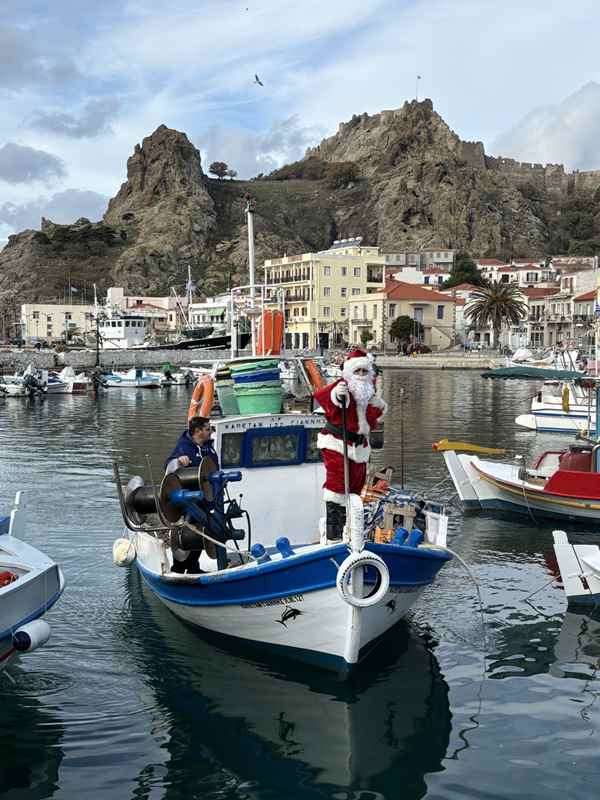 Λήμνος: Με καΐκι έφτασε ο Άγιος Βασίλης στην γιορτή της Αποθήκης στο λιμανάκι της Μύρινας! (εικόνες)