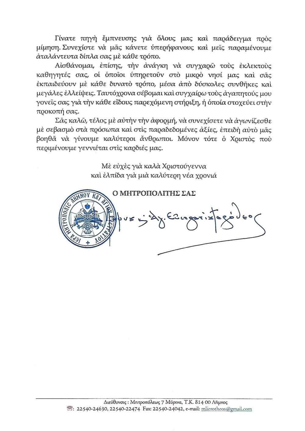 Μητροπολίτης Λήμνου σε μαθητές: Γίνατε πηγή έμπνευσης και παράδειγμα προς μίμηση