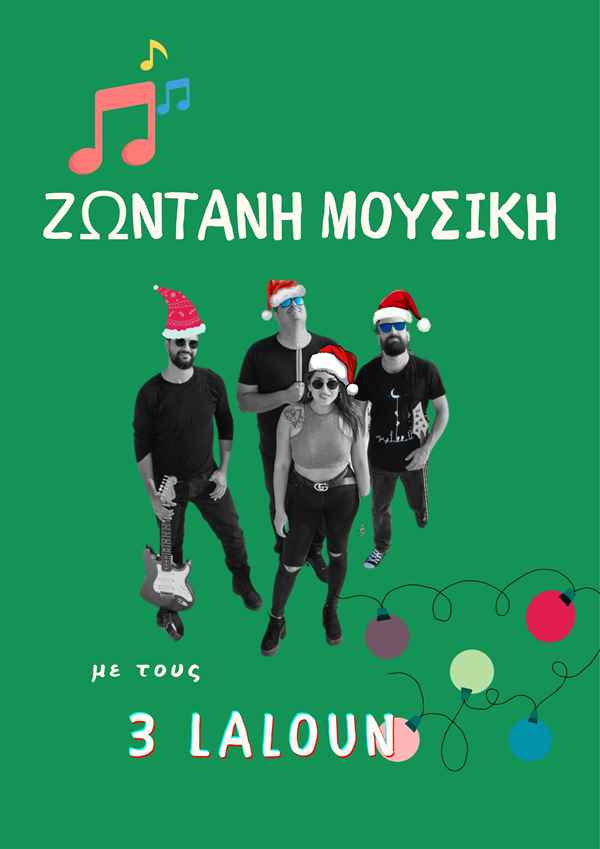 Οι αγαπημένοι μας 3 LALOUN υπόσχονται να ανεβάσουν τη διάθεση με ζωντανή μουσική που θα ταξιδέψει μικρούς και μεγάλους! Ένα συγκρότημα γεμάτο ενέργεια και χριστουγεννιάτικο κέφι που δεν πρέπει να χάσετε.