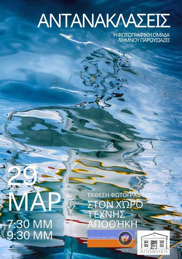 Η Φωτογραφική Ομάδα της Λήμνου προσκαλεί τους φίλους της φωτογραφίας, αλλά και όλους τους κατοίκους και επισκέπτες του νησιού μας, στην Ανοιξιάτικη Ομαδική Έκθεση Φωτογραφίας που οργανώνει, με θέμα «Αντανακλάσεις».