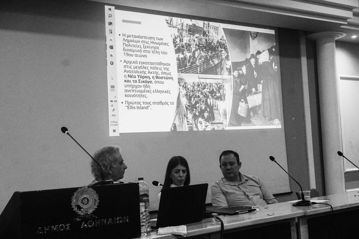 Η εκδήλωση ήταν για την Μετανάστευση στην ΑΜΕΡΙΚΗ των ανθρώπων του νησιού και του Βόρειου Αιγαίου .