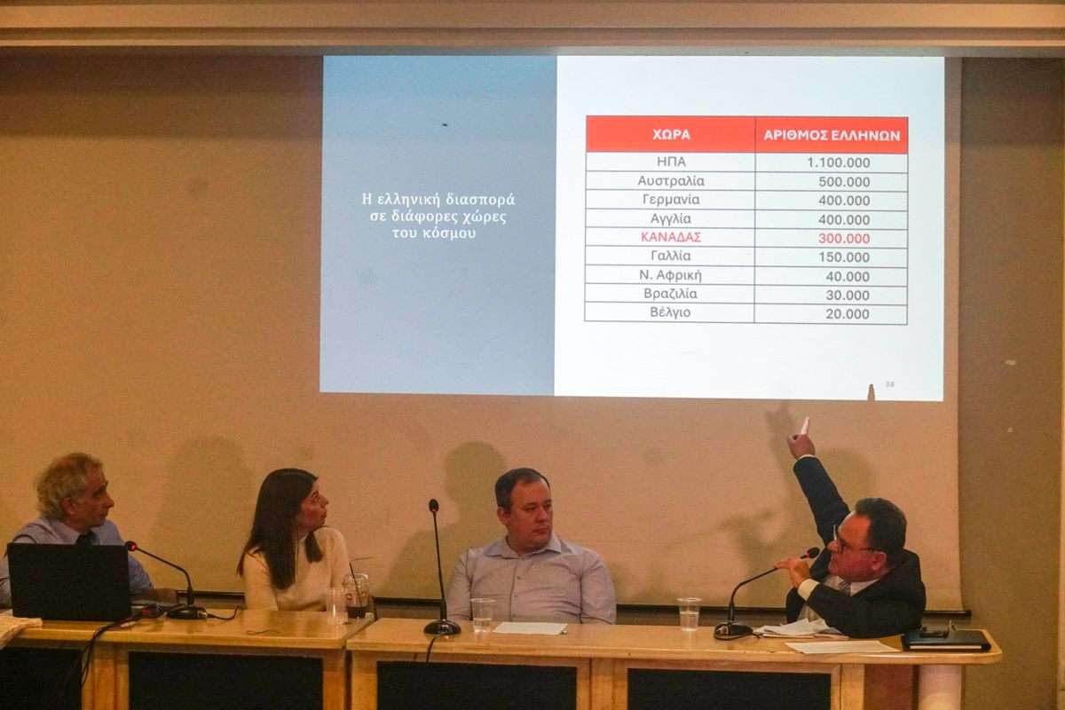 Ομιλητές της εκδήλωσης . Ο Δημ Ζερβός στην ομιλία του παρουσίασε τεκμήρια από την μετανάστευση στην Αμερική .