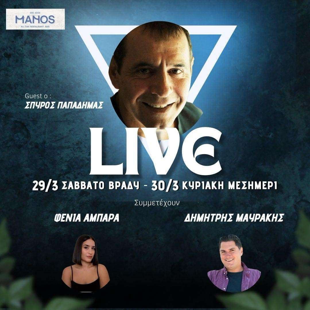 Ο Σπύρος Παπαδήμας έρχεται και πάλι στη Λήμνο για δύο live εμφανίσεις στο ΜΑΝΟΣ