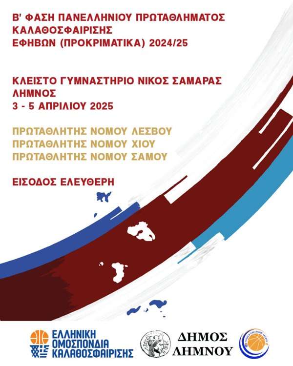 Η Λήμνος ετοιμάζεται να φιλοξενήσει τη Β’ Φάση του Πανελληνίου Πρωταθλήματος Καλαθοσφαίρισης Εφήβων (Προκριματικά) 2024/25, με τους καλύτερους νεαρούς αθλητές του Αιγαίου να δίνουν τη δική τους μάχη για την πρόκριση.