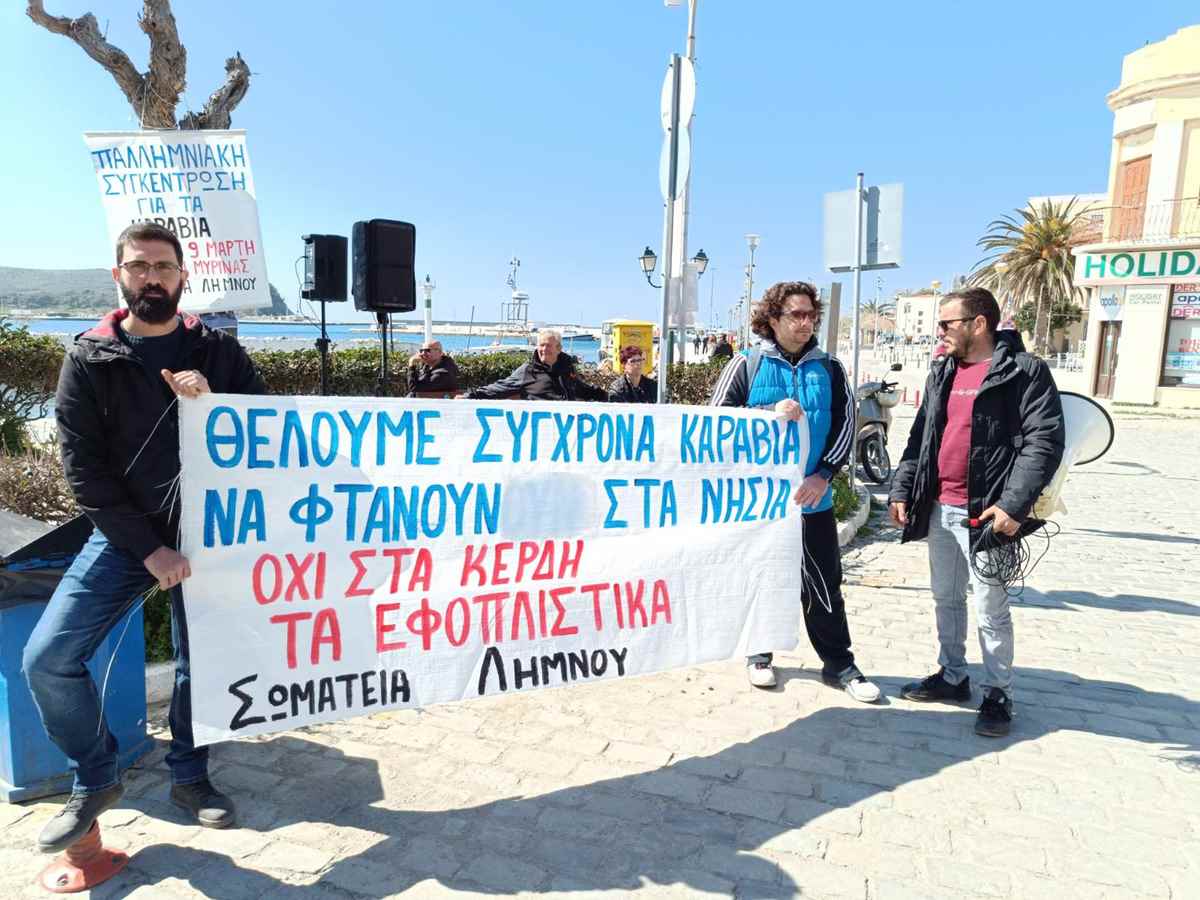 «Οι εργαζόμενοι, οι επαγγελματίες, οι αγρότες, οι κάτοικοι της Λήμνου που συγκεντρωθήκαμε σήμερα Κυριακή 9 Μαρτίου 2025 στο λιμάνι της Μύρινας, εκφράζουμε την αγανάκτησή μας για την πολιτική που εφάρμοσαν και εφαρμόζουν όλες οι μέχρι τώρα κυβερνήσεις, και η σημερινή, που εξυπηρετεί τα συμφέροντα και τα κέρδη των εφοπλιστικών εταιρειών, σε βάρος της εξυπηρέτησης των κατοίκων και των επισκεπτών των νησιών μας.
