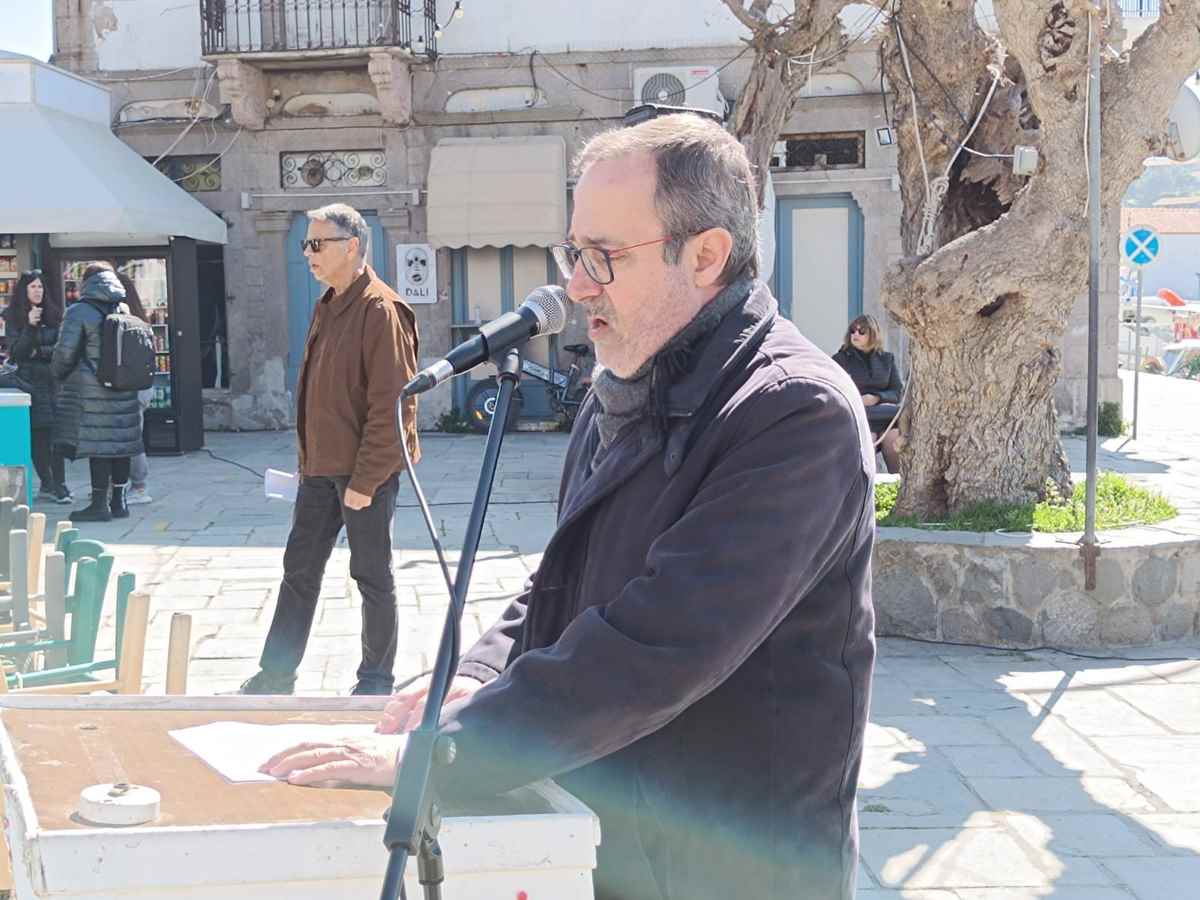 Στη συγκέντρωση μίλησε εκ μέρους των σωματείων, ο Νίκος Αχιλαδέλλης, πρόεδρος του Συλλόγου Εργαζομένων ΟΤΑ Λήμνου.