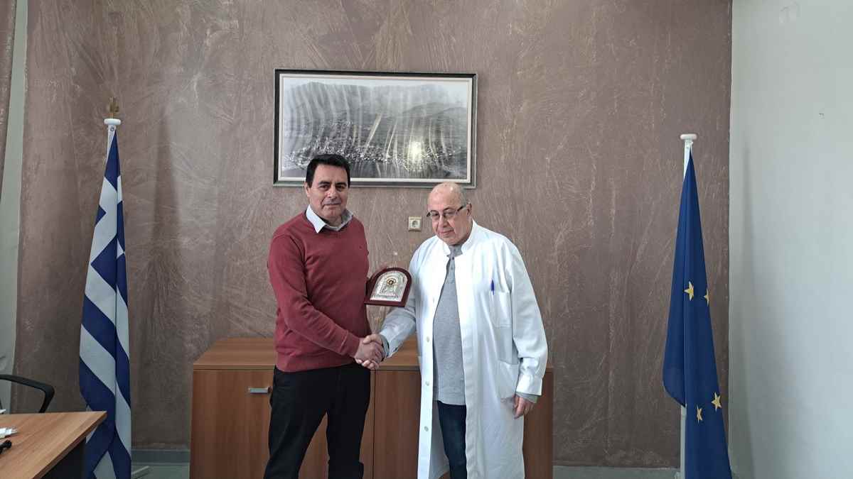 Ο απερχόμενος Διοικητής κ. Κανταράς Τριαντάφυλλος ενημέρωσε τον νέο Διοικητή κ. Μάνο Δημήτριο για θέματα του Νοσοκομείου και ευχαρίστησε όλους για τη συνεργασία κατά τη διάρκεια της θητείας του ως Διοικητή.