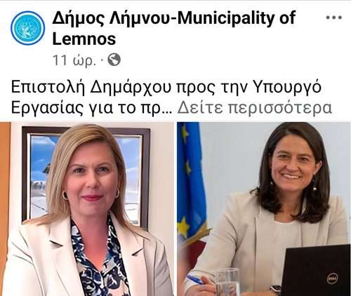 Δυστυχώς, ενώ σε άλλους Δήμους πανηγυρίζουν με δελτία τύπου για το ότι ήταν έτοιμοι και, παρά τα στενά χρονικά όρια που είχαν δοθεί (έκλεισε σε 16 ημέρες), κατάφεραν να μπουν στο πρόγραμμα, στον Δήμο Λήμνου πανηγυρίζουμε με δελτίο τύπου γιατί στείλαμε επιστολή προς την Υπουργό Εργασίας και Κοινωνικής Ασφάλισης κ. Νίκη Κεραμέως για να παρακαλέσουμε να επανασχεδιασθεί το πρόγραμμα, γιατί δεν το προλάβαμε!!!