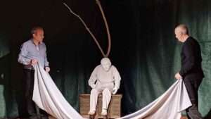 Στο τρίτο σκέλος της εκδήλωσης, το κοινό καθήλωσε ο Γιώργος Καριακλής, μέσα από ένα πρωτότυπο θεατρικό δρώμενο με μαριονέτα, με τίτλο «Ήχος της σιωπής ή Ψυχή χωρίς λόγια», με αφετηρία τα βιβλία και τα παιχνίδια του Χρήστου Μπουλώτη, αρχαιολόγου, συγγραφέα παιδικών βιβλίων και δωρητή της συλλογής του Μουσείου Παιδικού Παιχνιδιού και Βιβλίου της Λήμνου. Ένα έργο που δημιούργησε και ερμήνευσε ο ίδιος ο Γιώργος Καριακλής, ενώ ήταν επίσης ο δημιουργός του πλάσματος που αποτέλεσε «συμπρωταγωνιστή» του στην παράσταση η οποία μας ταξίδεψε μεταξύ πραγματικότητας και φαντασίας, όπως συμβαίνει με τα παιχνίδια και τα βιβλία. Τα παιχνίδια και η φωνή του Χρήστου Μπουλώτη, η εξαίρετη μουσική επένδυση από τον Φίλιππο Μάνεση, καθώς και το κείμενο του Θωμά Σφούνη προσέδωσαν ακόμη μεγαλύτερη αξία στην παράσταση, της οποίας την τεχνική επιμέλεια είχε ο Ρήγας Χρυσοχού. Επί σκηνής βρέθηκε και η Δήμαρχος Λήμνου κ. Ελεονώρα Γεώργα συνοδεύοντας τον καλλιτέχνη σε ένα μικρό μέρος του έργου.