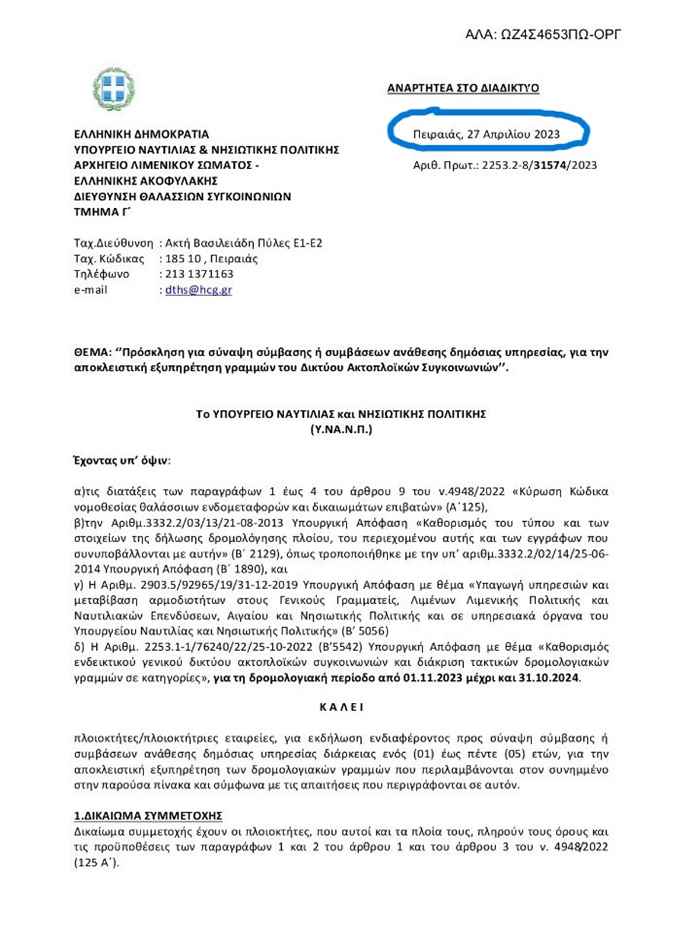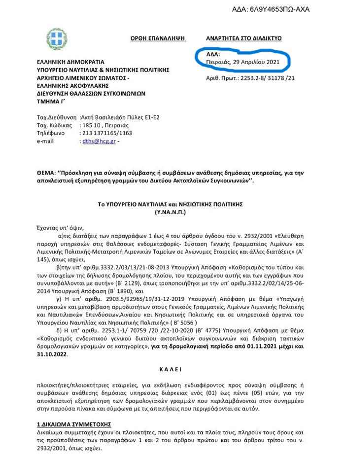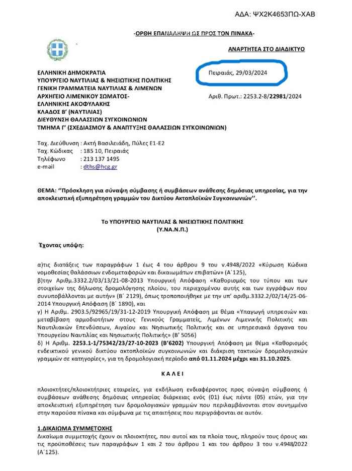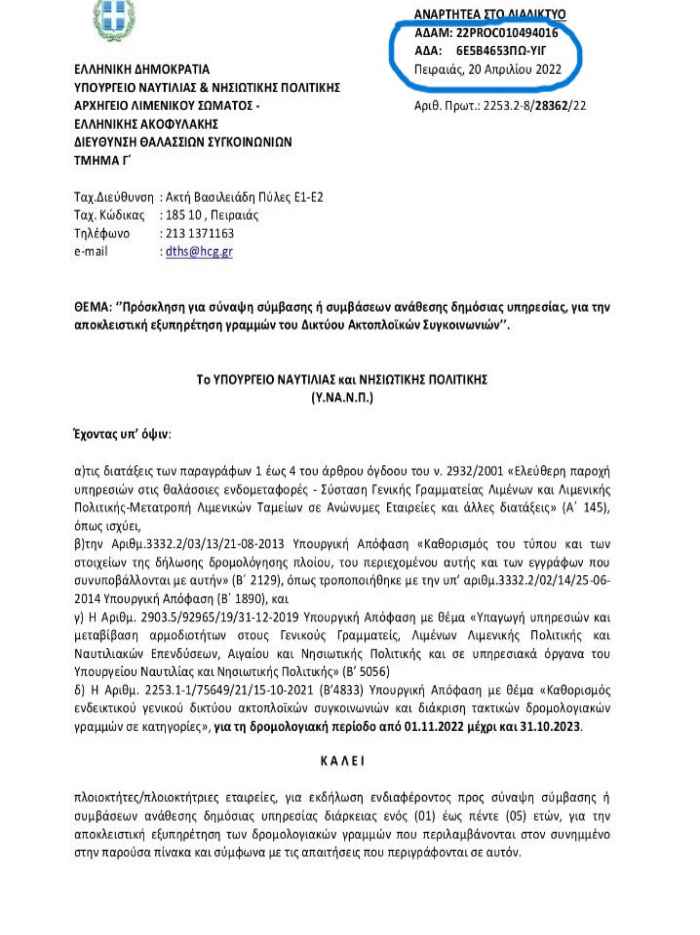 *Αναλυτικά, μπορείτε να διαβάσετε την προκήρυξη του υπουργείου Ναυτιλίας και Νησιωτικής Πολιτικής, εδώ