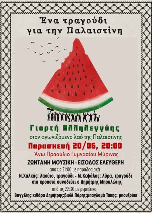 “Ένα τραγούδι για την Παλαιστίνη” – Αποχαιρετιστήρια εκδήλωση της ΕΛΜΕ Λήμνου & Αγ. Ευστρατίου