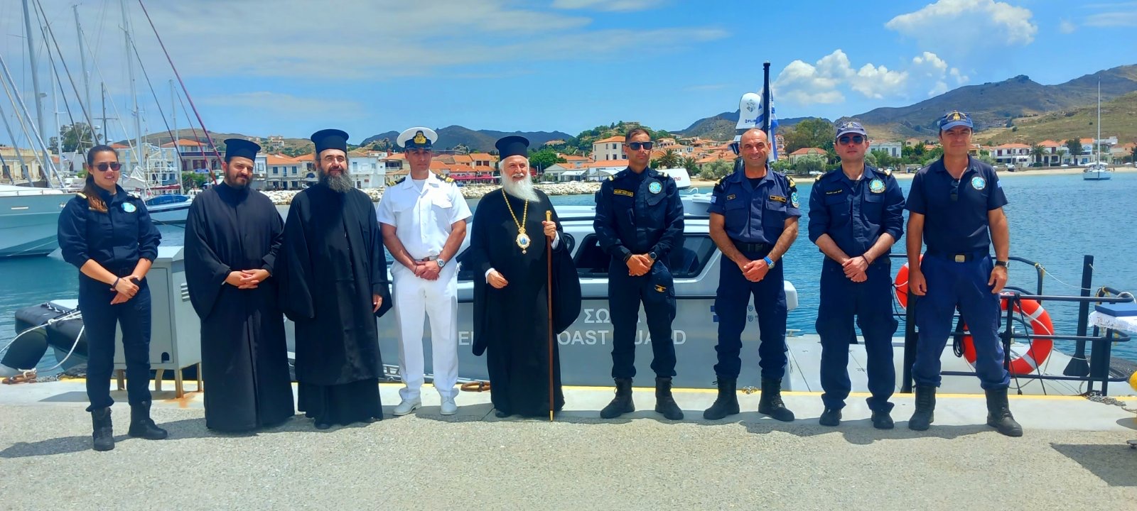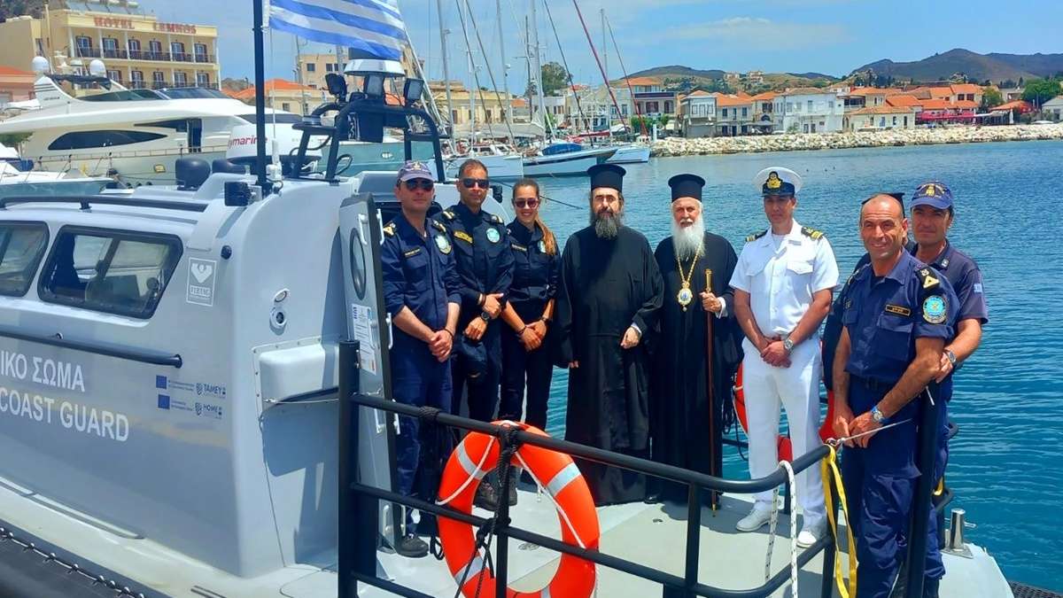 Αμέσως μετά την τελετή του αγιασμού, ο Σεβασμιώτατος προέβη και στα εγκαίνια του νέου σκάφους του Λιμενικού Σώματος, το οποίο εντάσσεται στο στόλο για την ενίσχυση της επιχειρησιακής ετοιμότητας και της ασφάλειας της νήσου μας στα θαλάσσια σύνορα.