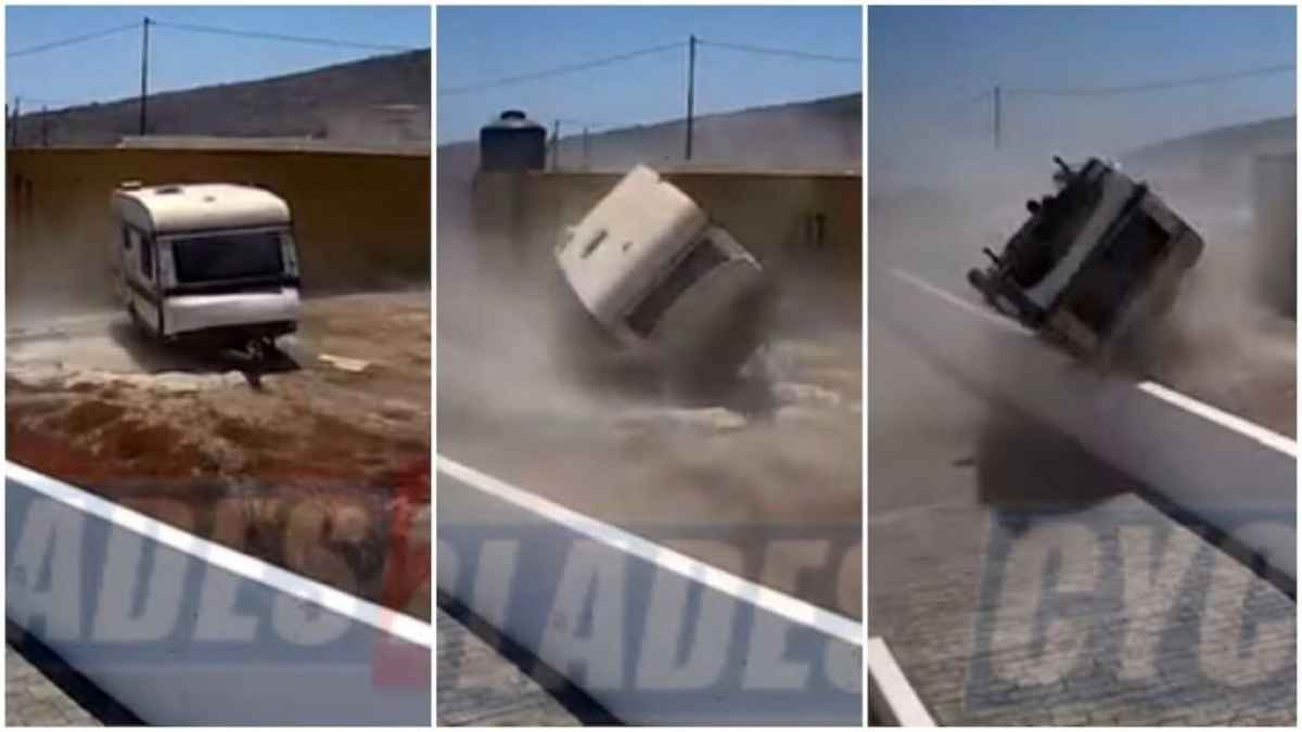 Το τροχόσπιτο, ευτυχώς, ήταν άδειο εκείνη την ώρα, αποτρέποντας τα χειρότερα. Το περιστατικό κατέγραψε κάμερα ασφαλείας από γειτονικό σπίτι, αποτυπώνοντας το μένος των ανέμων και τη σφοδρότητα του φαινομένου.