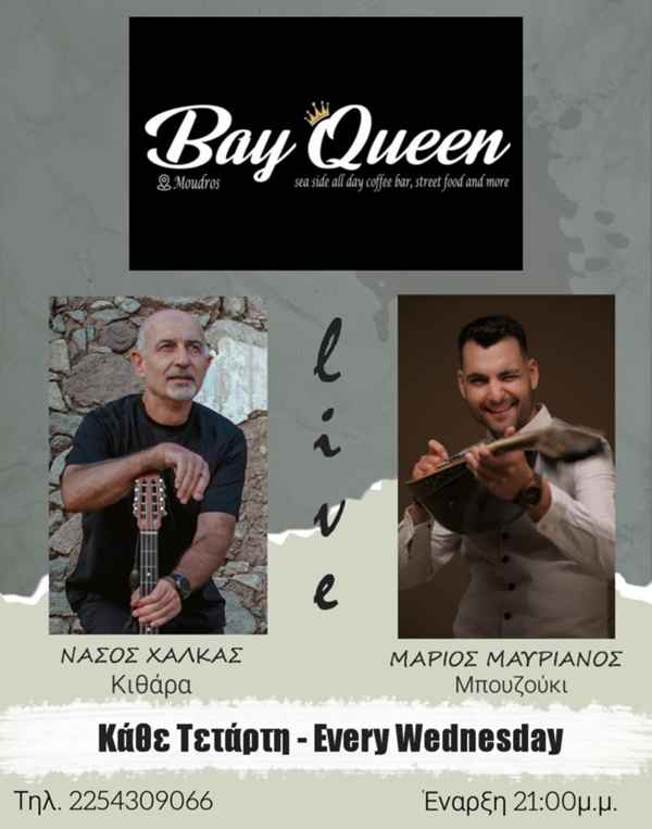 Βραδιά ζωντανής μουσικής σήμερα, Τετάρτη 2 Αυγούστου, στο Bay Queen στον Μούδρο!