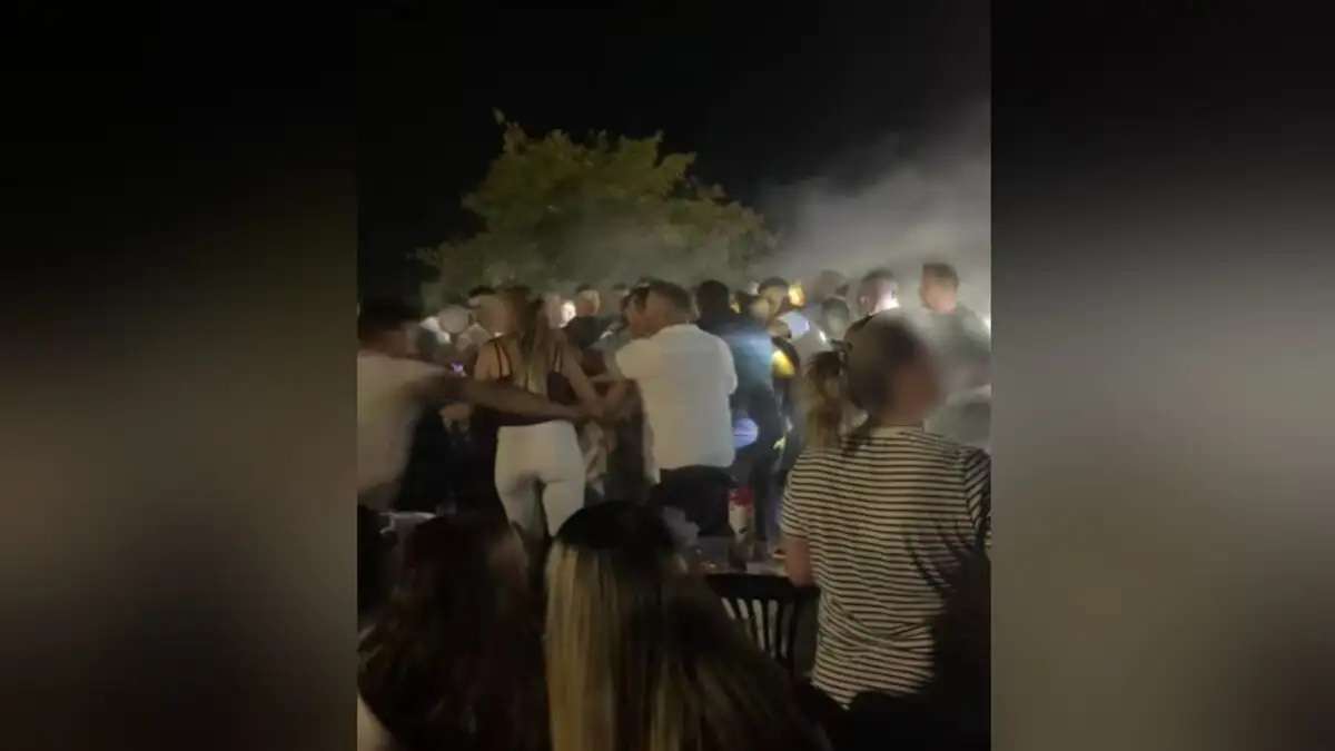 Κατά τη διάρκεια της συμπλοκής «έφευγαν» στον αέρα τραπέζια, καρέκλες και μπουκάλια ενώ η τραγουδίστρια προσπαθούσε από τη σκηνή να ηρεμήσει τα πνεύματα