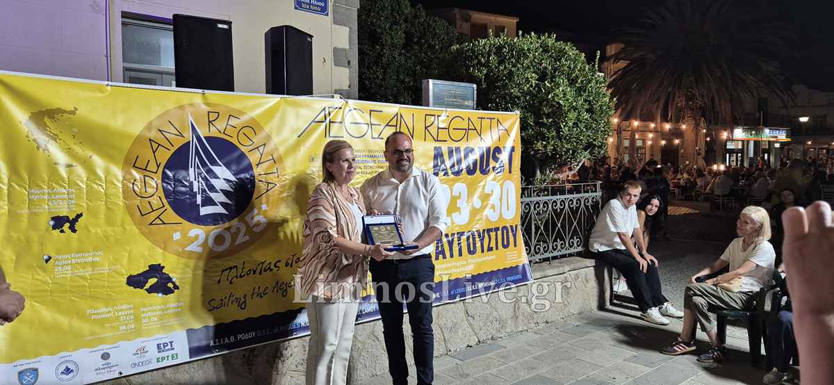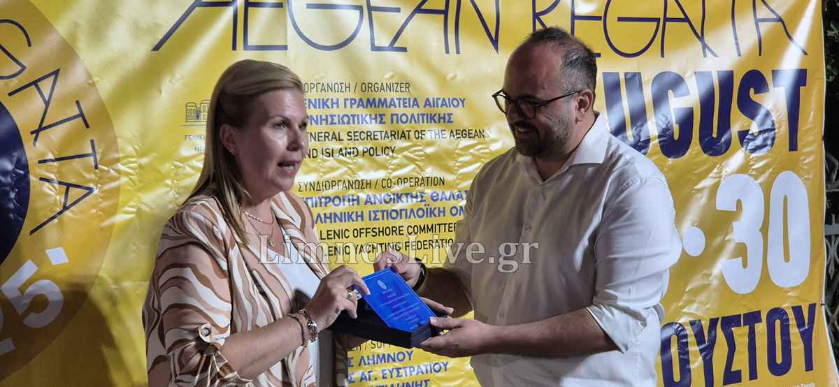 Η Δήμαρχος Λήμνου ευχαρίστησε τον Γενικό Γραμματέα για την άριστη συνεργασία στη διοργάνωση της ρεγκάτας αλλά και ευρύτερα. Σημείωσε δε ότι “η έναρξη των αγώνων της Aegean Regatta στο νησί της Λήμνου είναι ένα πολύ σημαντικό γεγονός, με έντονους συμβολισμούς, που φέρνει στην επιφάνεια τη δύναμη και τη σημασία του ναυταθλητισμού ως μοχλού ανάπτυξης και ενίσχυσης της τοπικής οικονομίας”.