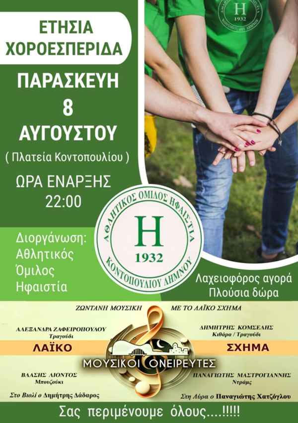 Η πιο κεφάτη βραδιά του καλοκαιριού έρχεται στο Κοντοπούλι – Ετήσια Χοροεσπερίδα του ΑΟ Ηφαίστια!