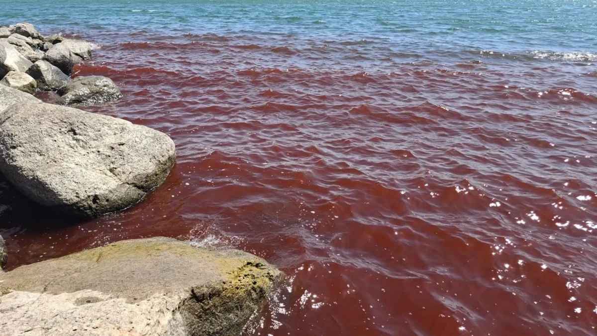 Η εμφάνιση κόκκινων κηλίδων στην επιφάνεια αποδίδεται στην άνθιση του φυκιού Botryococcus braunii, ένα είδος πράσινης άλγης που ευδοκιμεί σε περιόδους έντονης ηλιοφάνειας.