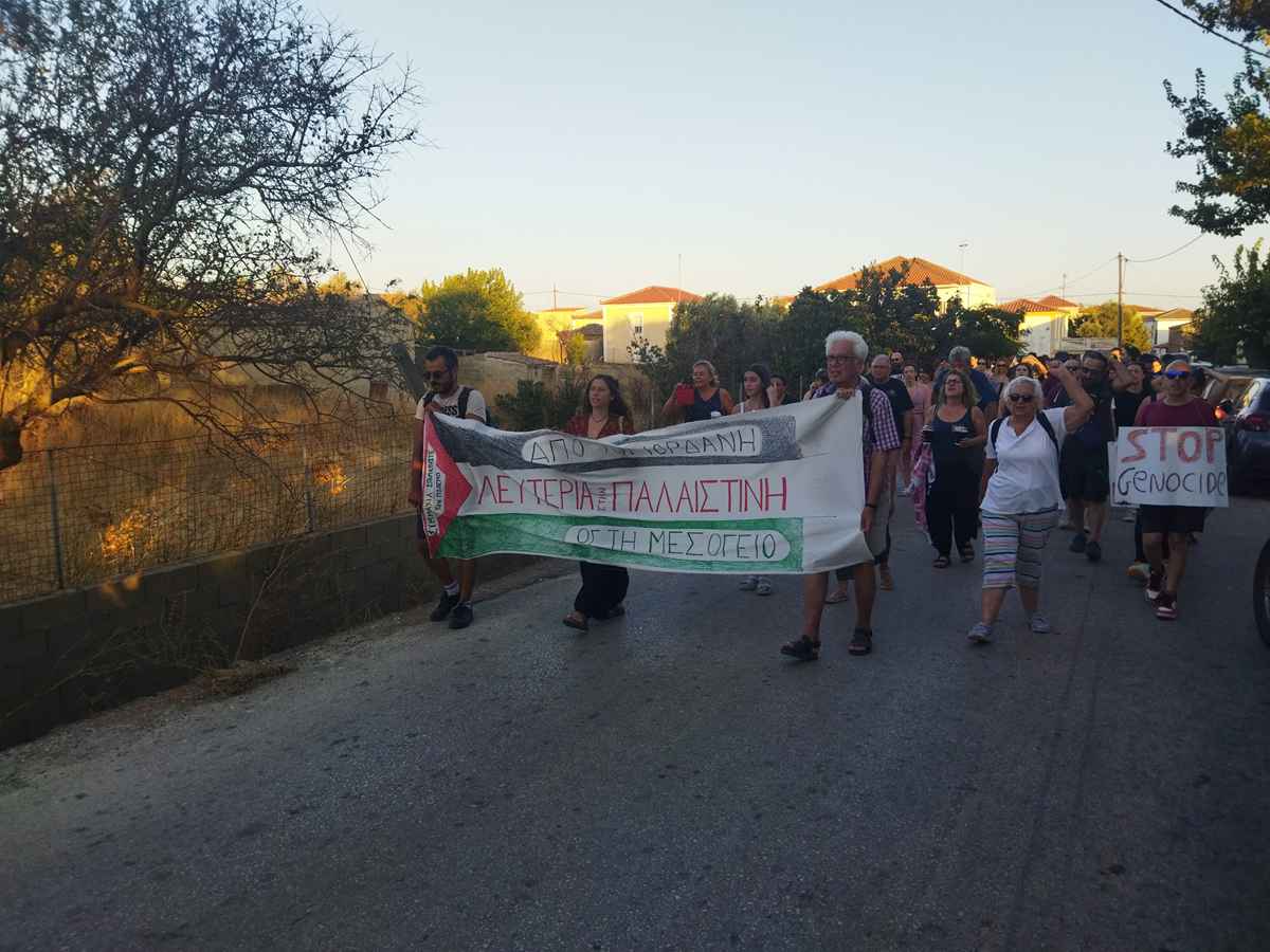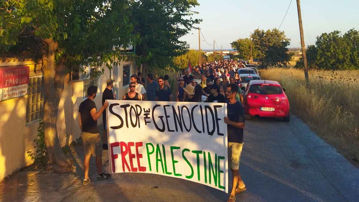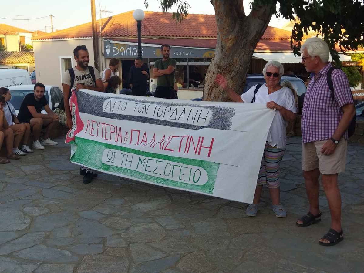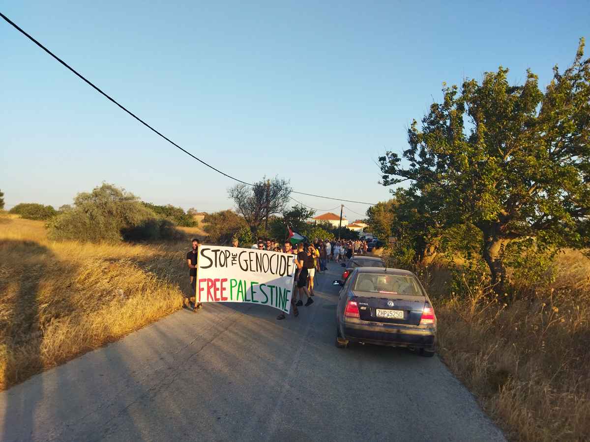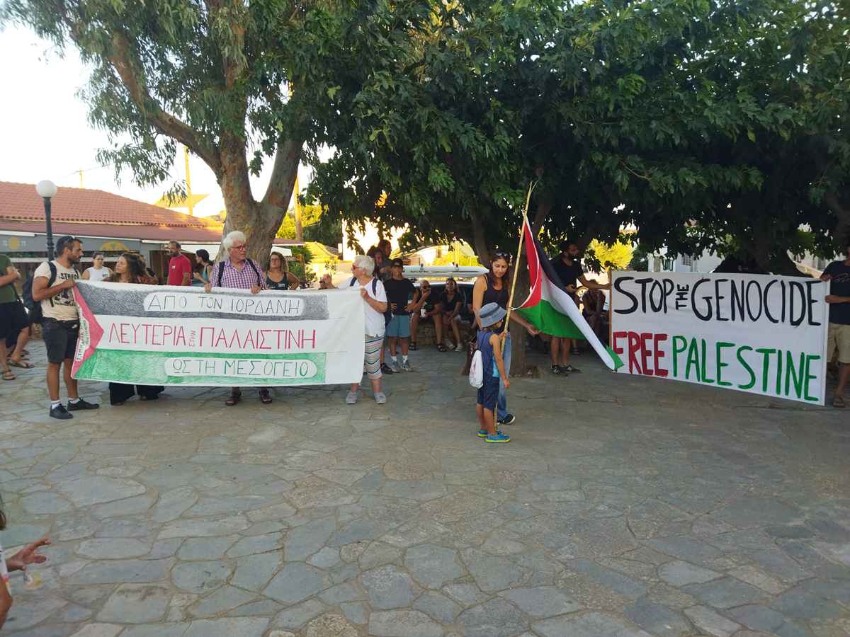 Χθες 10 Αυγούστου απόγευμα της Κυριακής στις 19:00 περίπου 300 άνθρωποι ντόπιοι και επισκέπτες του νησιού έδωσαν δυναμικό παρόν σε πορεία αλληλεγγύης προς τον παλαιστινιακό λαό.