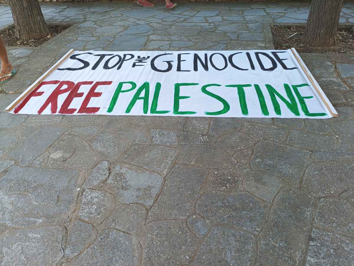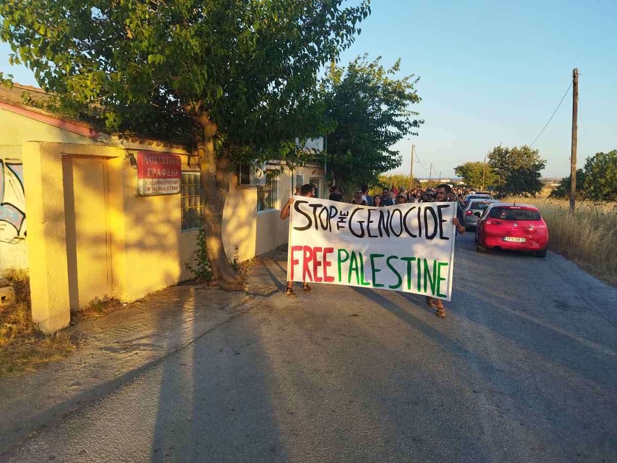 Στη Λήμνο, το κάλεσμα ανέφερε: «Ενάντια στη γενοκτονία και τα εγκλήματα που διαπράττει το κράτος του Ισραήλ, ολόψυχα στο πλευρό της παλαιστινιακής αντίστασης».