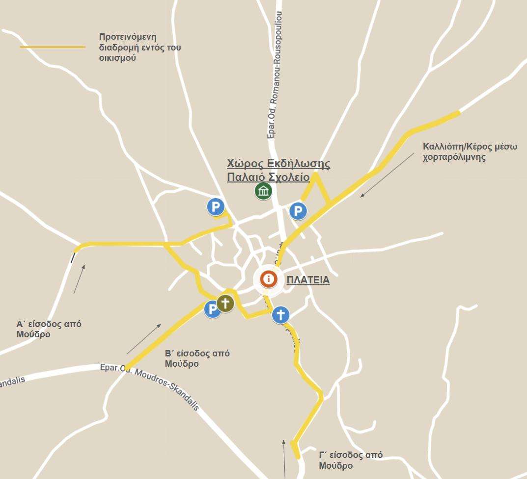 Η στάθμευση στο Ρουσσόπουλι θα γίνεται παρόδια, αλλά για τις ανάγκες της ημέρας και σε χώρους κοντά στον χώρο της εκδήλωσης που θα υπάρχει σχετική σήμανση, όπως φαίνονται στο σκαρίφημα.
