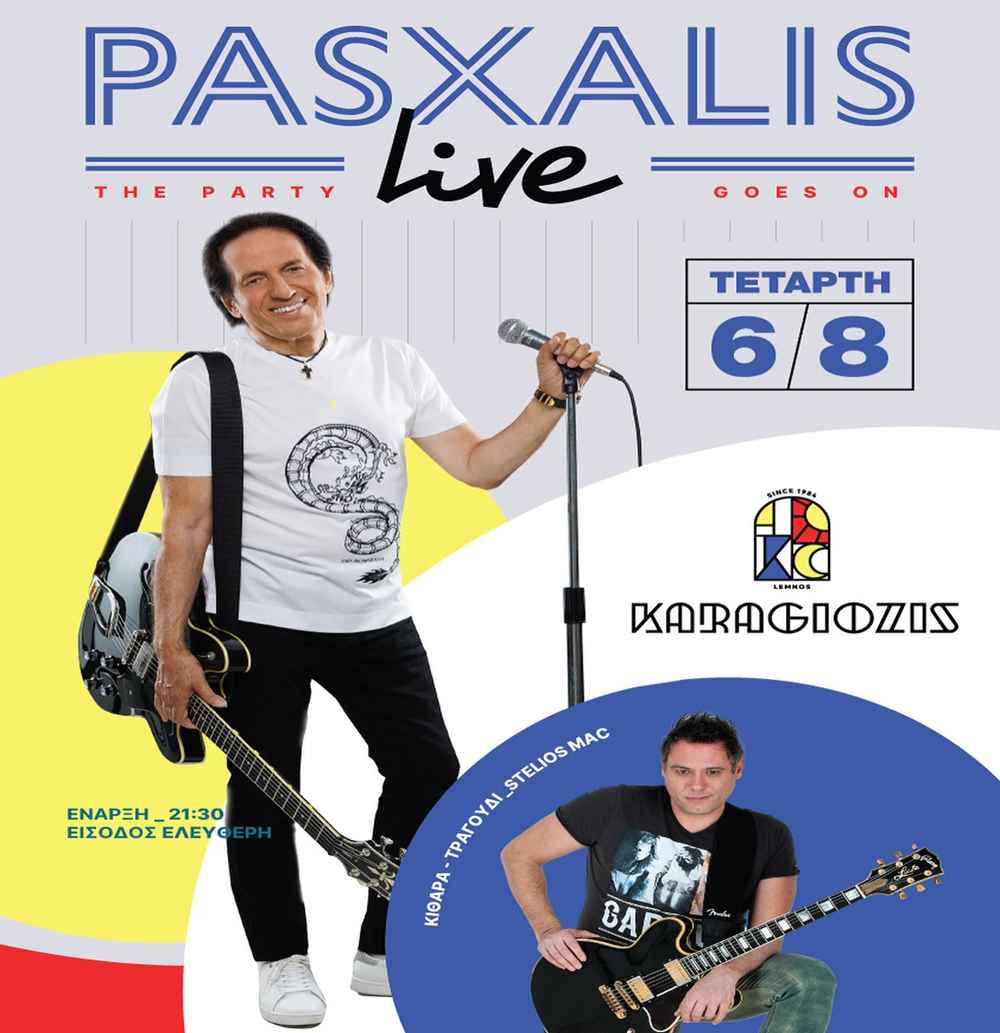 Την Τετάρτη 06 Αυγούστου, στις 21:30 (αυστηρά), υποδεχόμαστε τον Πασχάλη, τον αγαπημένο σε όλους μας καλλιτέχνη, για ένα μοναδικό live στο Karagiozis Bar, στο κέντρο της Μύρινας.