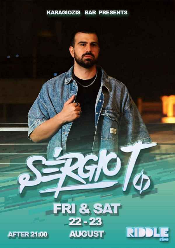 Το Karagiozis Bar υποδέχεται για δύο συνεχόμενες βραδιές, Παρασκευή 22 και Σάββατο 23 Αυγούστου, έναν από τους πιο ταλαντούχους και δημοφιλείς Έλληνες DJs και μουσικούς παραγωγούς, τον Sergio T. Από τις 21:00 και μετά, το γνωστό στέκι της Μύρινας γεμίζει με δυνατές μουσικές και ρυθμούς που υπόσχονται να απογειώσουν το καλοκαιρινό σας βράδυ.