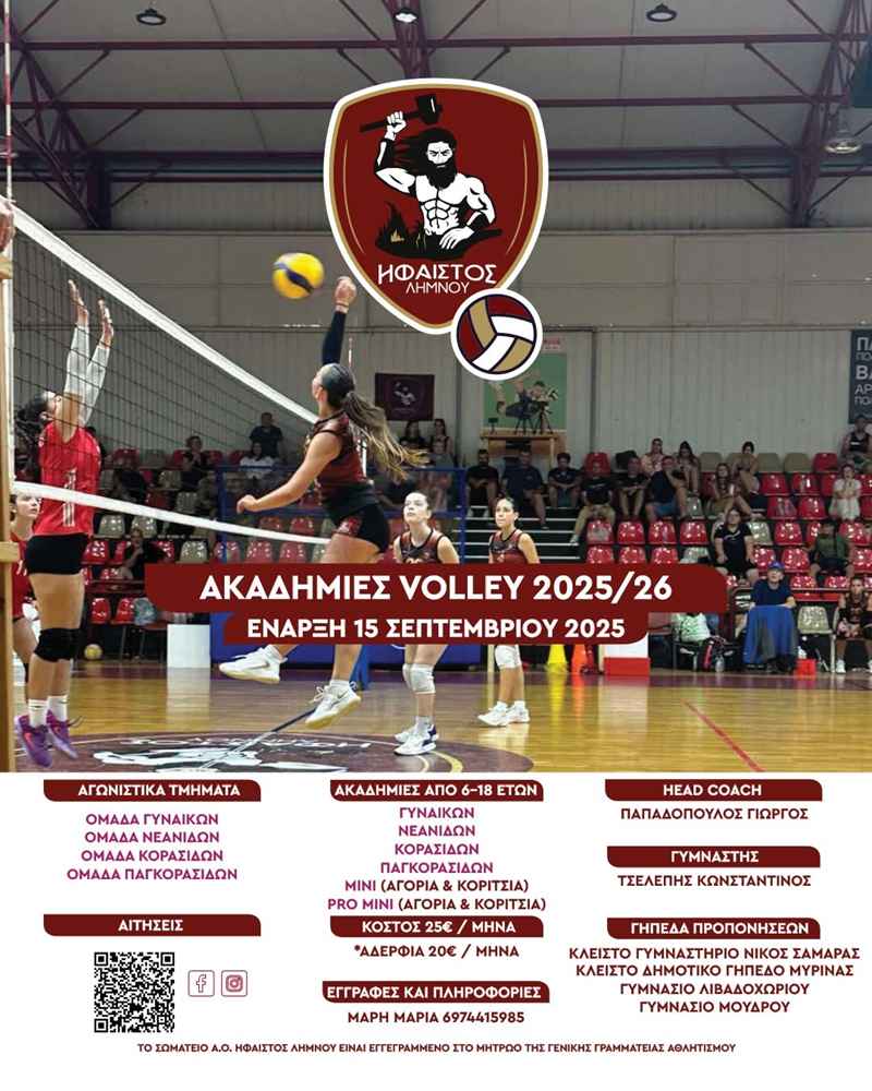 Ακαδημίες Volley 2025/26 – Γίνε κι εσύ μέρος της φλόγας του Ηφαίστου Λήμνου!