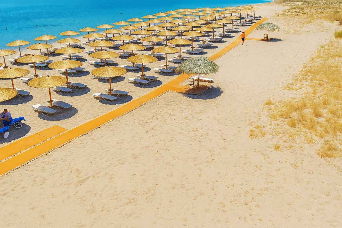 Η παραλία στο Θάνος είναι το ιδανικό σκηνικό ρηχά, ασφαλή νερά για οικογένειες, αμμουδιά για παιχνίδι, χώρος για beach volley, και γωνιές για όσους αγαπούν την ηρεμία.