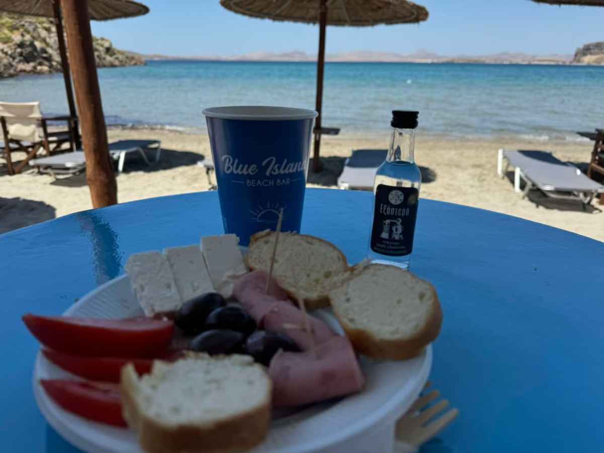 Το Blue Island προσφέρει μια προσεγμένη επιλογή από νόστιμα και ελαφριά γεύματα, όπως το κλασικό club sandwich με πατάτες, παραδοσιακό ντάκο με φέτα και ντομάτα, αφράτο hot dog, μεζέ με τοπικό ουζάκι ή τσιπουράκι