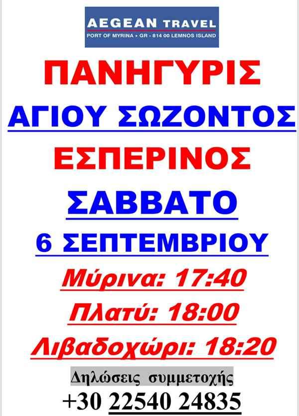 Δρομολόγια λεωφορείων για τον Εσπερινό του Αγίου Σώζοντος στη Λήμνο