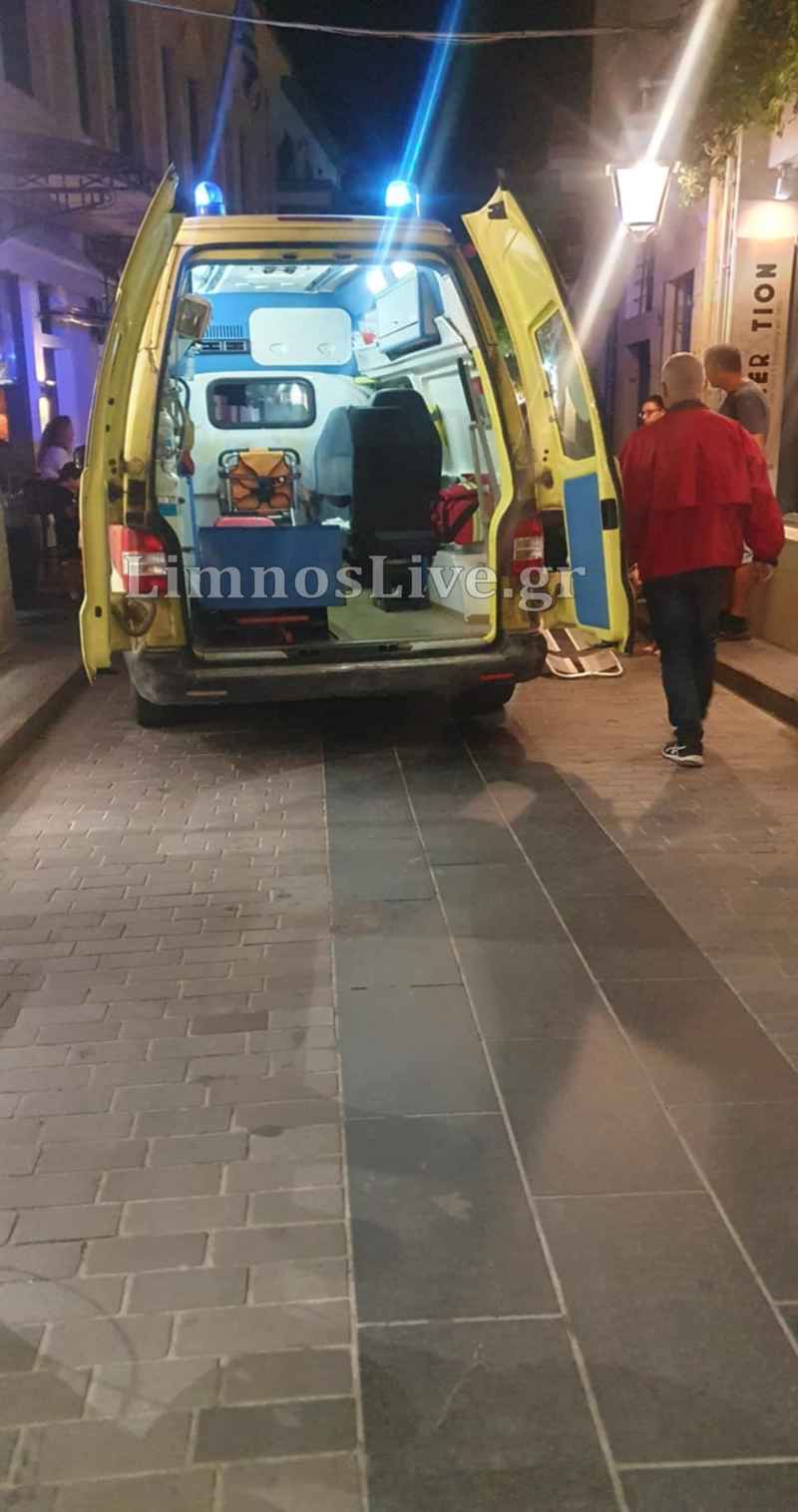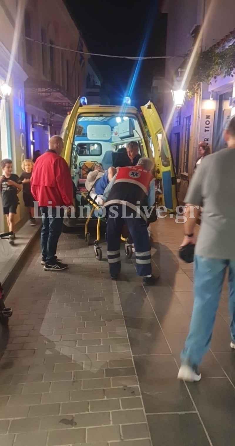 Λίγα λεπτά αργότερα έφτασε ασθενοφόρο του ΕΚΑΒ, το οποίο παρέλαβε τη γυναίκα και την μετέφερε στο Νοσοκομείο Λήμνου για ιατρική εκτίμηση και φροντίδα.