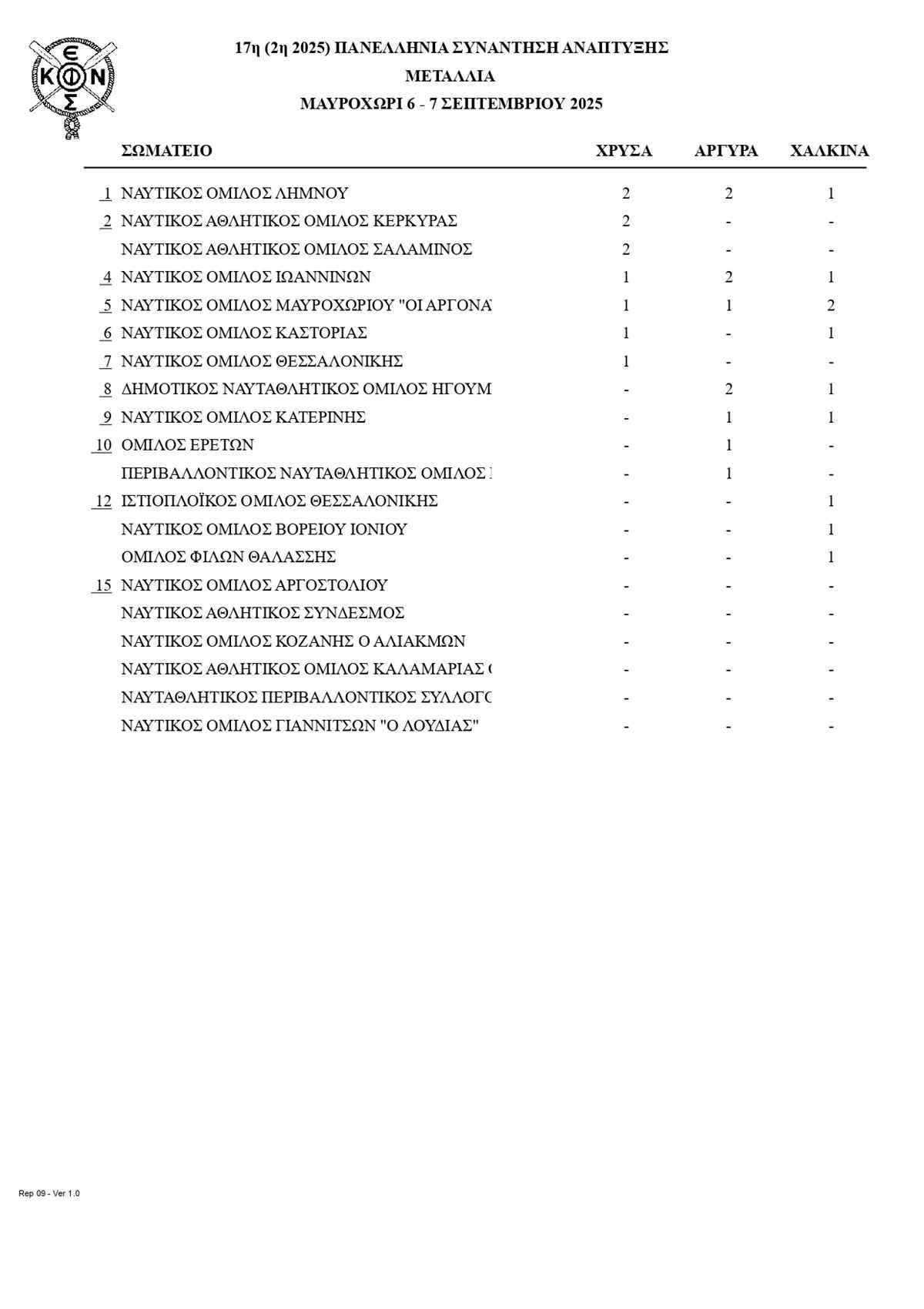 Ο Ναυτικός Όμιλος Λήμνου ολοκλήρωσε κλείνοντας το αγωνιστικό πρόγραμμα 2025 της Κωπηλατικής Ομοσπονδίας με τις ακόλουθες επιτυχίες: