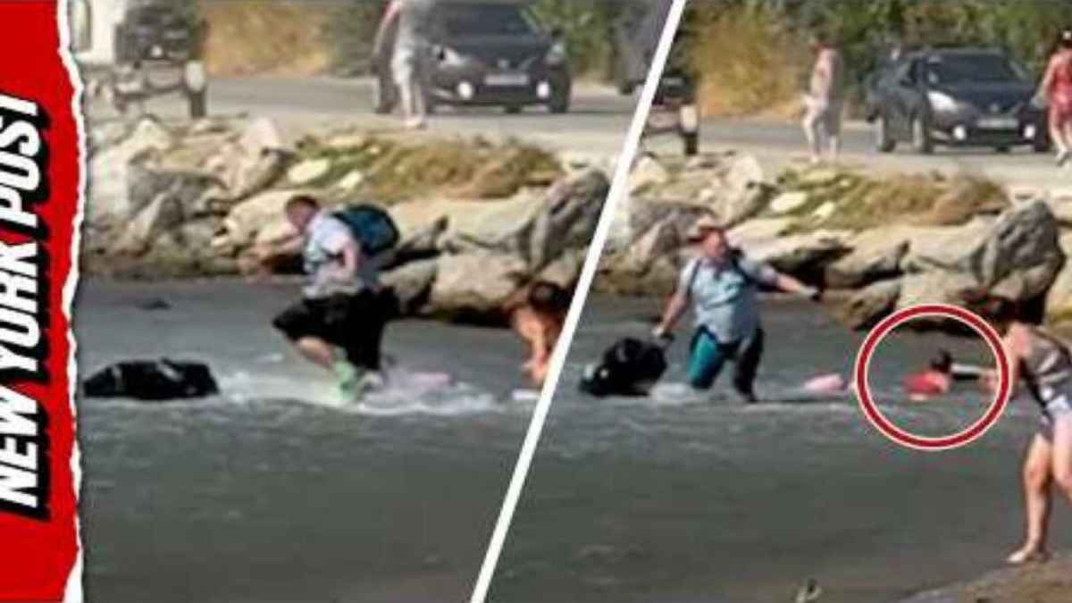Σε χαρακτηριστικό καρέ διακρίνεται τουρίστας να τρέχει μέσα στο νερό για να περισώσει τη βαλίτσα του.