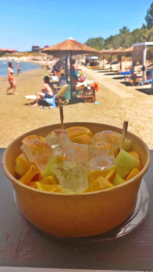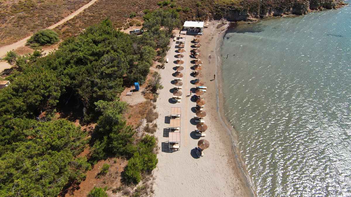 Ξαπλώνεις κάτω από τις ψάθινες ομπρέλες χωρίς να πληρώσεις τίποτα μόνο με ό,τι εσύ θες να πάρεις . Δεν υπάρχει ελάχιστη κατανάλωση, δεν υπάρχουν δεσμεύσεις. Απλώς κάθεσαι, χαλαρώνεις και αφήνεις τη θάλασσα και το τοπίο να σε γεμίσουν. Οι ομπρέλες απέχουν μεταξύ τους 3,5 μέτρα, προσφέροντας πραγματική άνεση και ιδιωτικότητα.