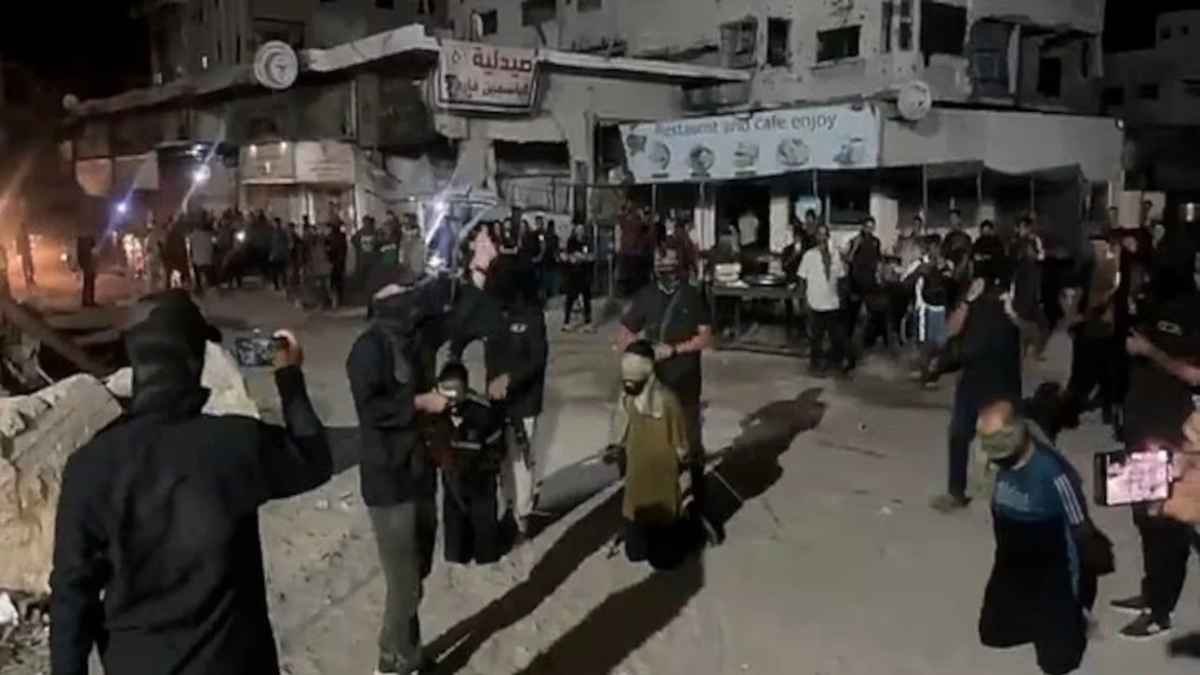 Βίντεο που αναρτήθηκαν σε λογαριασμούς του Telegram που συνδέονται με τη Χαμάς τρεις Παλαιστίνιους με δεμένα μάτια και χέρια γονατιστούς στο έδαφος σε μία πλατεία. Γύρω τους βρίσκονται μασκοφόροι ένοπλοι της Χαμάς και πλήθος κόσμου που συγκεντρώθηκε για να παρακολουθήσει και να κινηματογραφήσει τη δημόσια εκτέλεση.