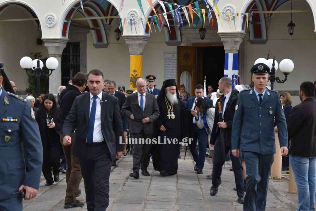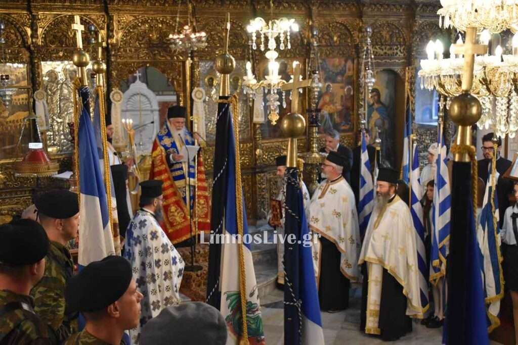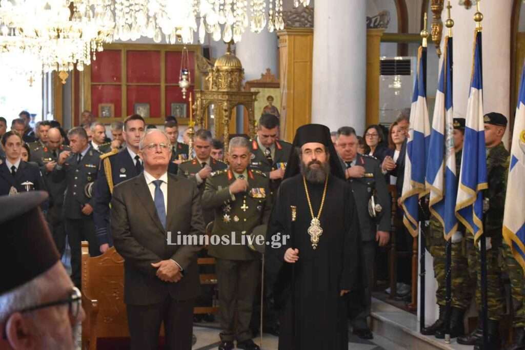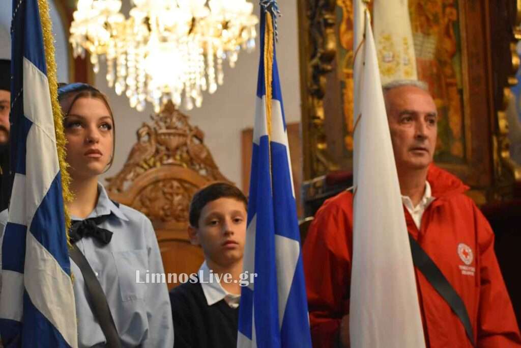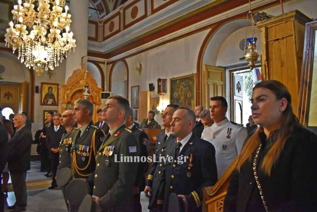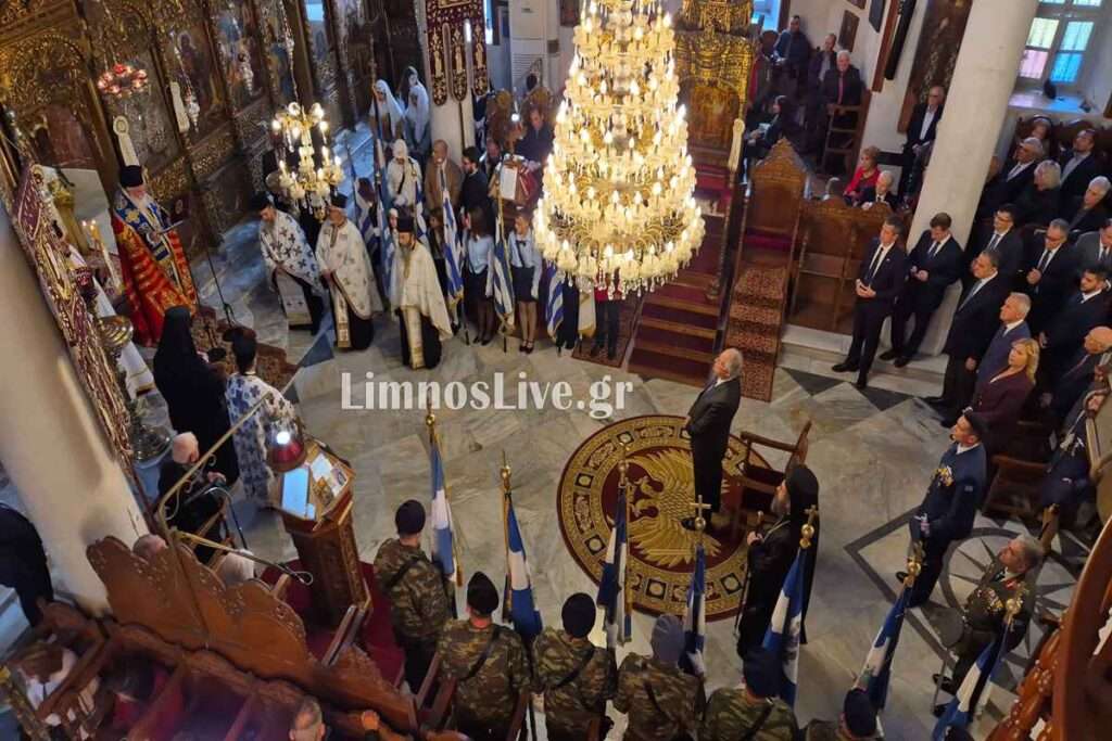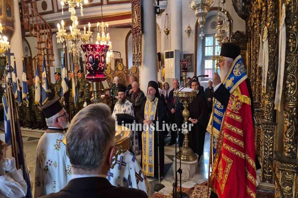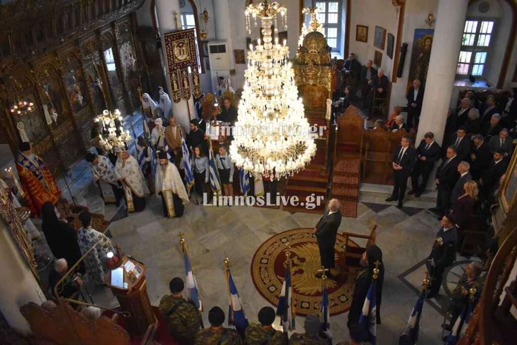 Η ημέρα ξεκίνησε με τη Δοξολογία στον Μητροπολιτικό Ιερό Ναό Αγίας Τριάδος Μύρινας, όπου χοροστάτησε ο Σεβασμιώτατος Μητροπολίτης Λήμνου και Αγίου Ευστρατίου κ. Ιερόθεος.