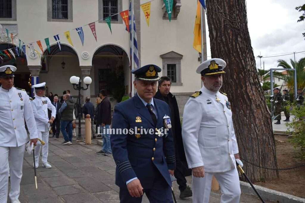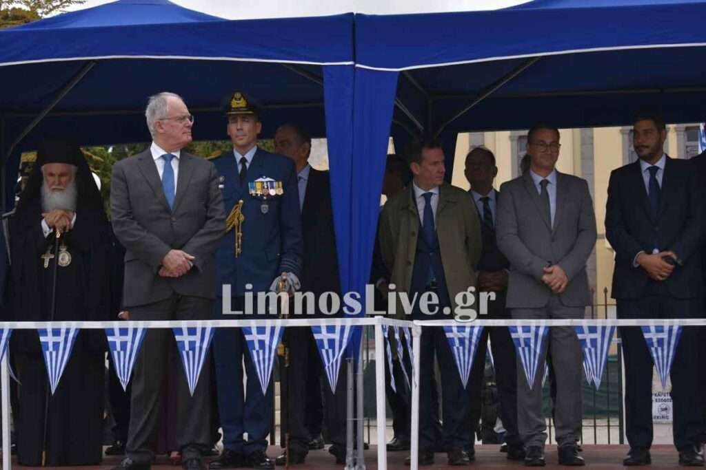 Στις εκδηλώσεις παρέστησαν, μεταξύ άλλων, ο βουλευτής Λέσβου Χαράλαμπος Αθανασίου, ο Διοικητής της ΑΣΔΕΝ Αντιστράτηγος Δημήτριος Βακεντής ως εκπρόσωπος του ΑΓΕΕΘΑ Στρατηγού Δημητρίου Χούπη, η Δήμαρχος Λήμνου Ελεονώρα Γεώργα, ο Αντιπεριφερειάρχης Βορείου Αιγαίου Κωνσταντίνος Αρώνης, ο Έπαρχος Λήμνου Απόστολος Κουτσογιάννης, ο Δήμαρχος Αγίου Ευστρατίου Κωνσταντίνος Σινάνης, ο Βουλευτής του ΠΑΣΟΚ Παναγιώτης Δουδωνής, εκπρόσωποι κομμάτων, Σωμάτων Ασφαλείας, Τοπικής Αυτοδιοίκησης, Ενόπλων Δυνάμεων και συλλόγων.