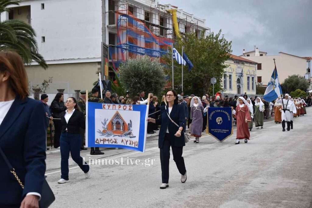 Συμμετείχαν η φιλαρμονική του Δήμου Λήμνου, το Παράρτημα Λήμνου του Ελληνικού Ερυθρού Σταυρού, πολιτιστικοί και αθλητικοί σύλλογοι, μαθητές και μαθήτριες των σχολείων, καθώς και αντιπροσωπία από τον αδελφοποιημένο Δήμο Λύσης της Κύπρου.
