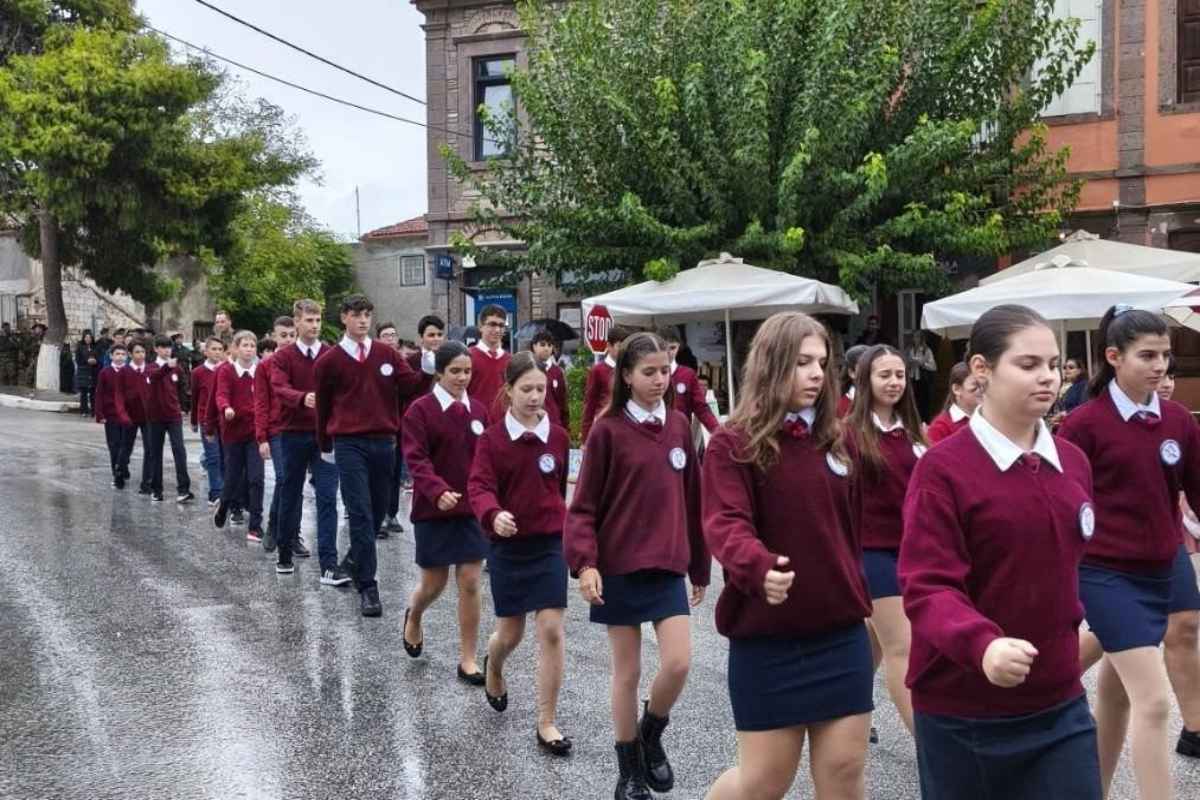 Με περηφάνια και παρά τη βροχή οι μαθητές και οι μαθήτριες του Γυμνασίου Μούδρου συμμετείχαν και φέτος στη μαθητική παρέλαση, τιμώντας τα «Ελευθέρια» της Λήμνου.