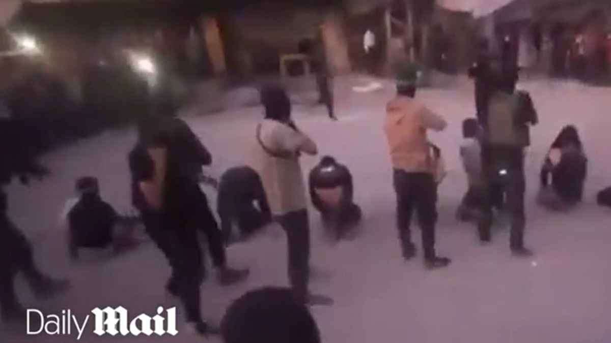Στο βίντεο, που διαδόθηκε ευρέως στα μέσα κοινωνικής δικτύωσης, φαίνονται άνδρες γονατισμένοι με τα χέρια δεμένα πίσω από την πλάτη, ενώ ένοπλοι με καλυμμένα πρόσωπα στέκονται από πίσω τους.